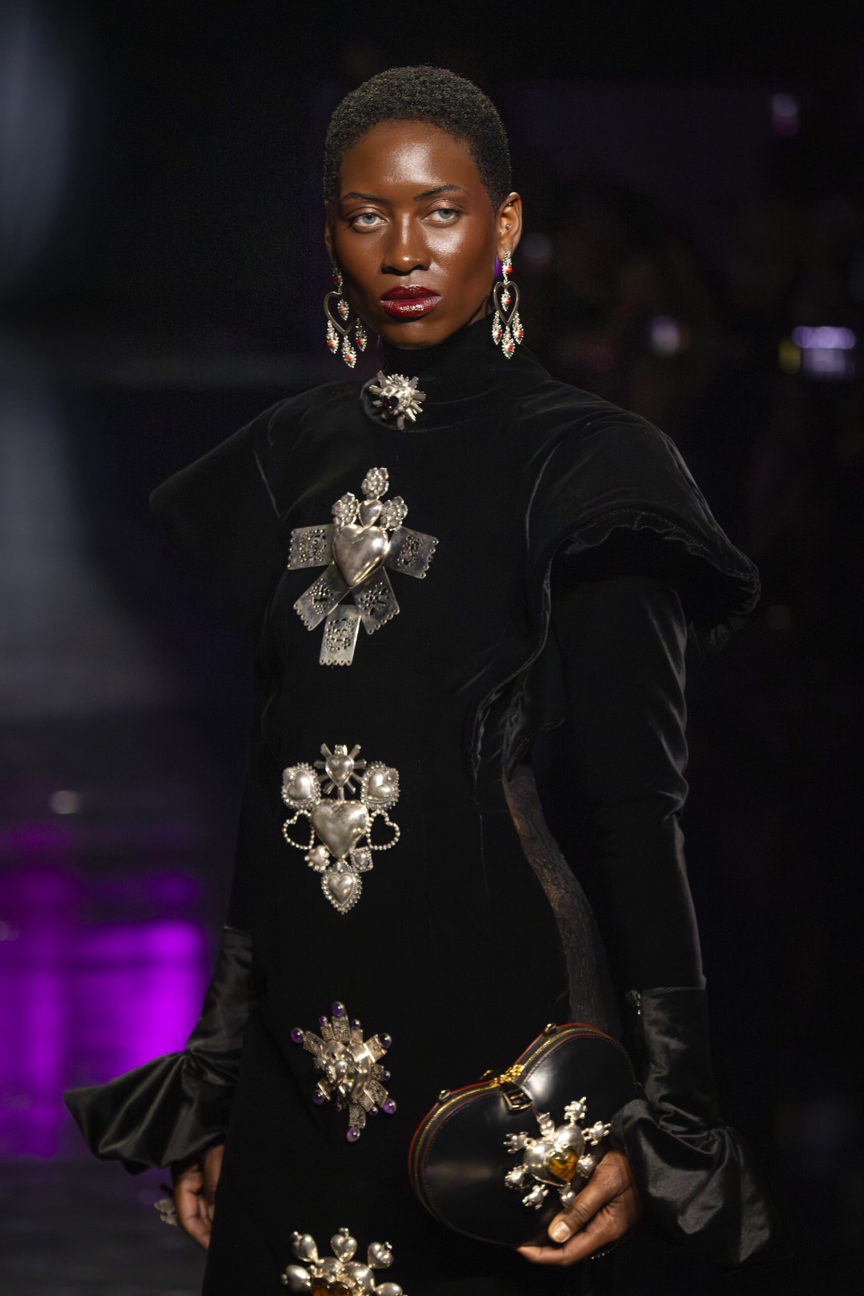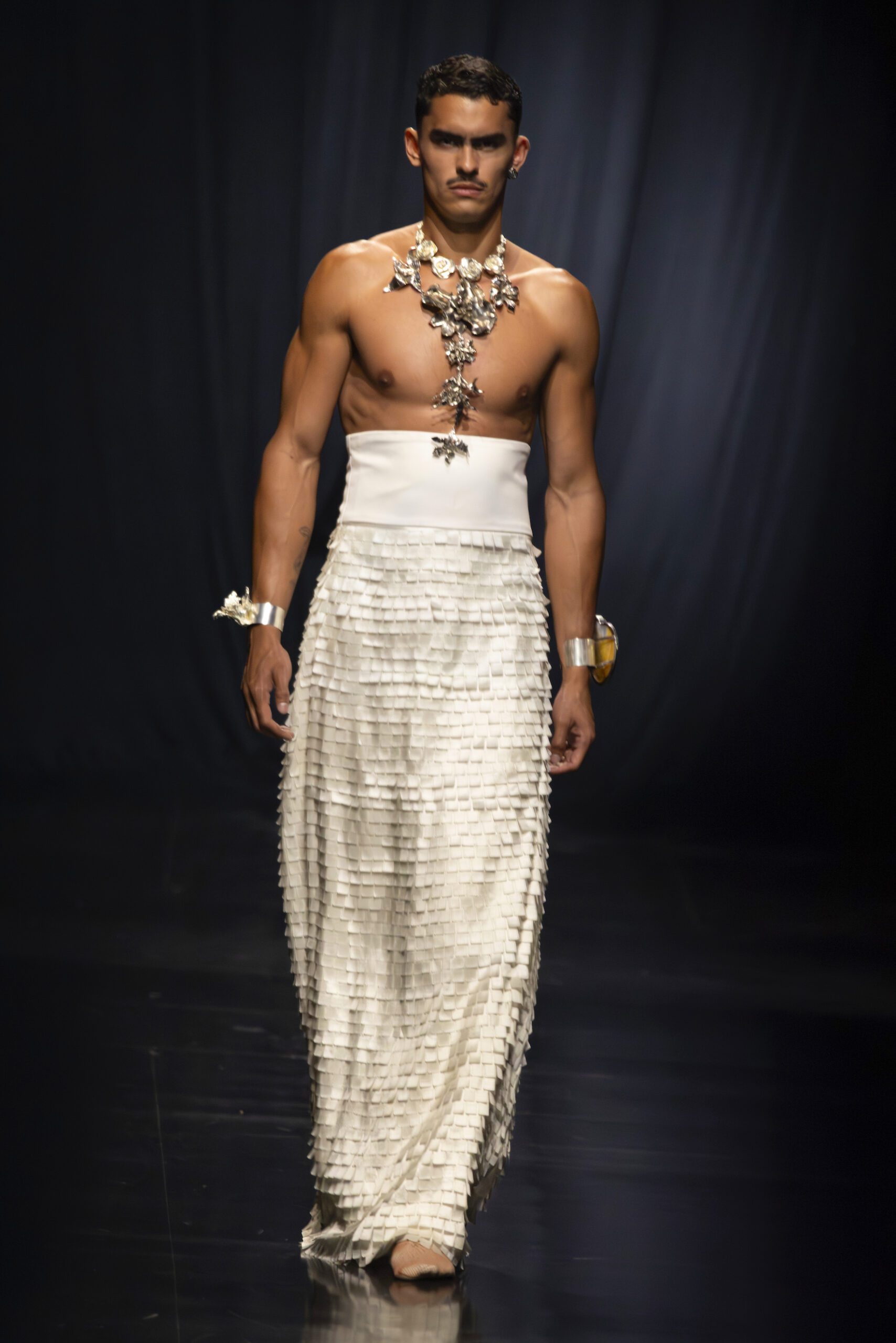 Venezuelan designer Luis Enrique Bolívar developed both the wardrobe and the original sound design for the runway. His contribution added symbolic depth and a contemporary narrative aligned with the essence of the collection.