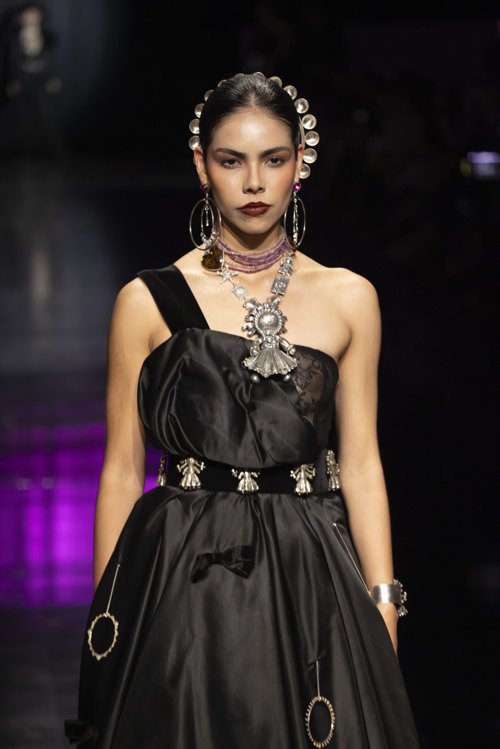The event marked the culmination of more than two decades dedicated to design, cultural identity, and the international projection of Mexican jewelry. The brand presented 60 maximalist jewels that reflect the evolution, spirit, and unity of the house. Many of the pieces were crafted in Mexican silver and preserved over 25 years as part of the firm’s historical archive, including designs from collections such as Agaves Plata, Calacas, Corazones, Rebozos, and pieces made with the stretched‑glass technique.